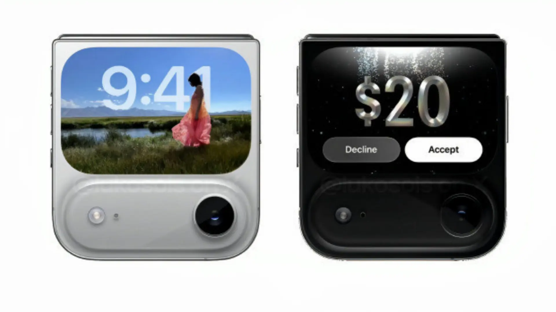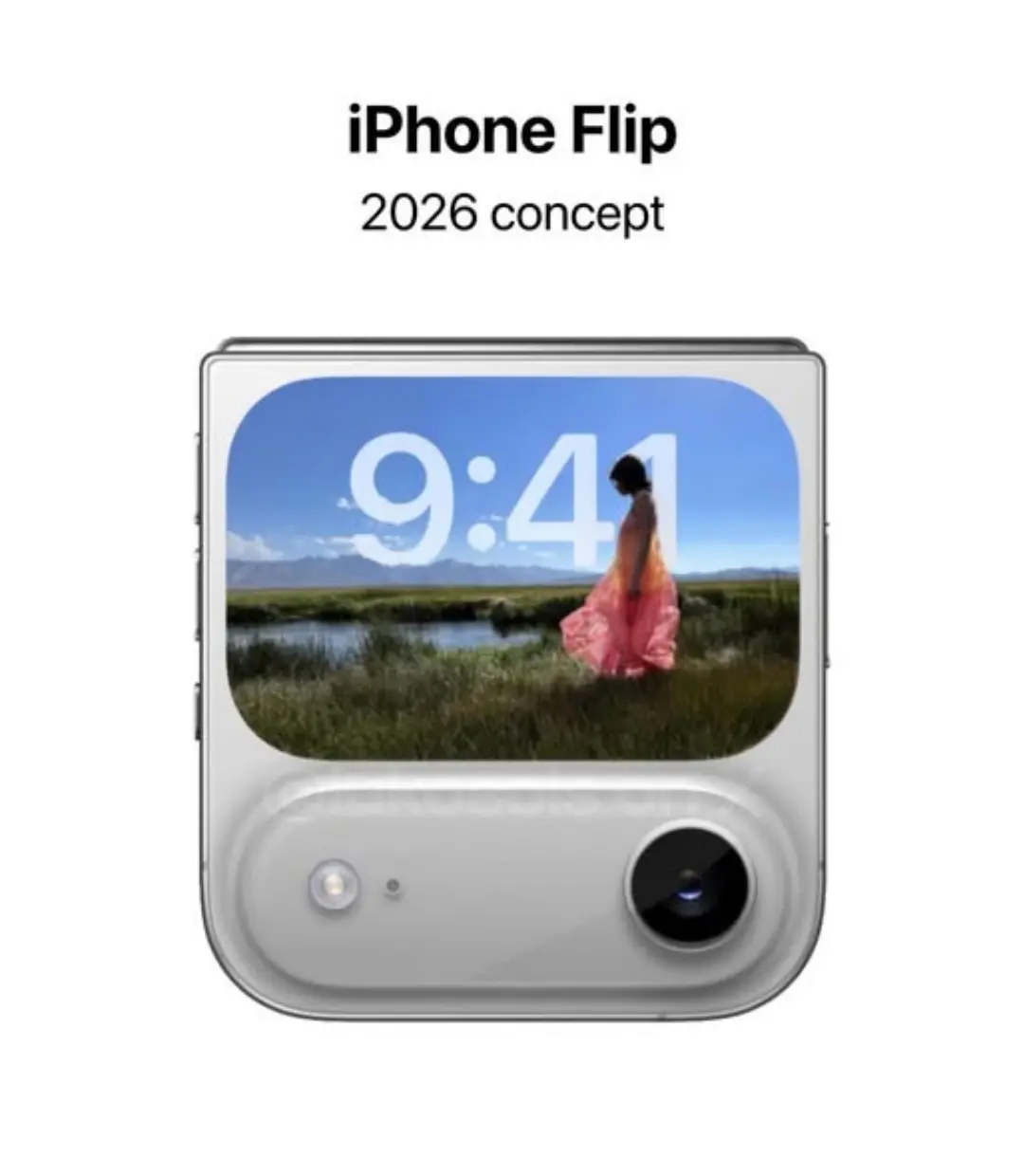 2025年12月3日,一组据称是iPhone Flip小折叠屏的概念图在网络上曝光。最引人注目的是其摄像头模组,设计语言与最新发布的iPhone Air高度一致。