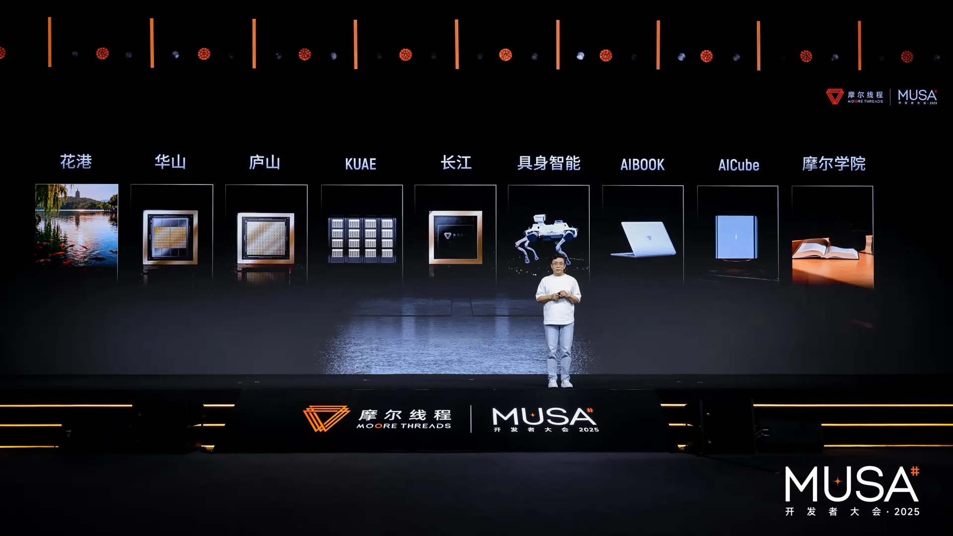 他公布了最新GPU架构“花港”,宣布基于该架构的芯片将于2026年量产,算力密度提升50%,效能提升10倍。架构的具体落地体现在两条产品线上:面向AI训练推理的“华山”芯片和专攻高性能图形渲染的“庐山”芯片。