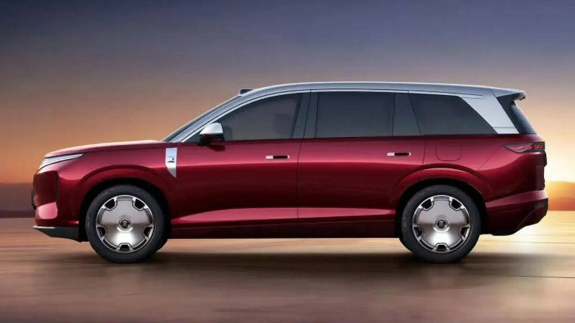 看它的尺寸:长宽高5263/5302×1999×1790/1800mm,轴距3130mm,是标准的全尺寸SUV。看它的细节:21英寸大饼样式复古轮圈、双色车身、贯穿式LED灯带、隐藏式门把手、车顶激光雷达。